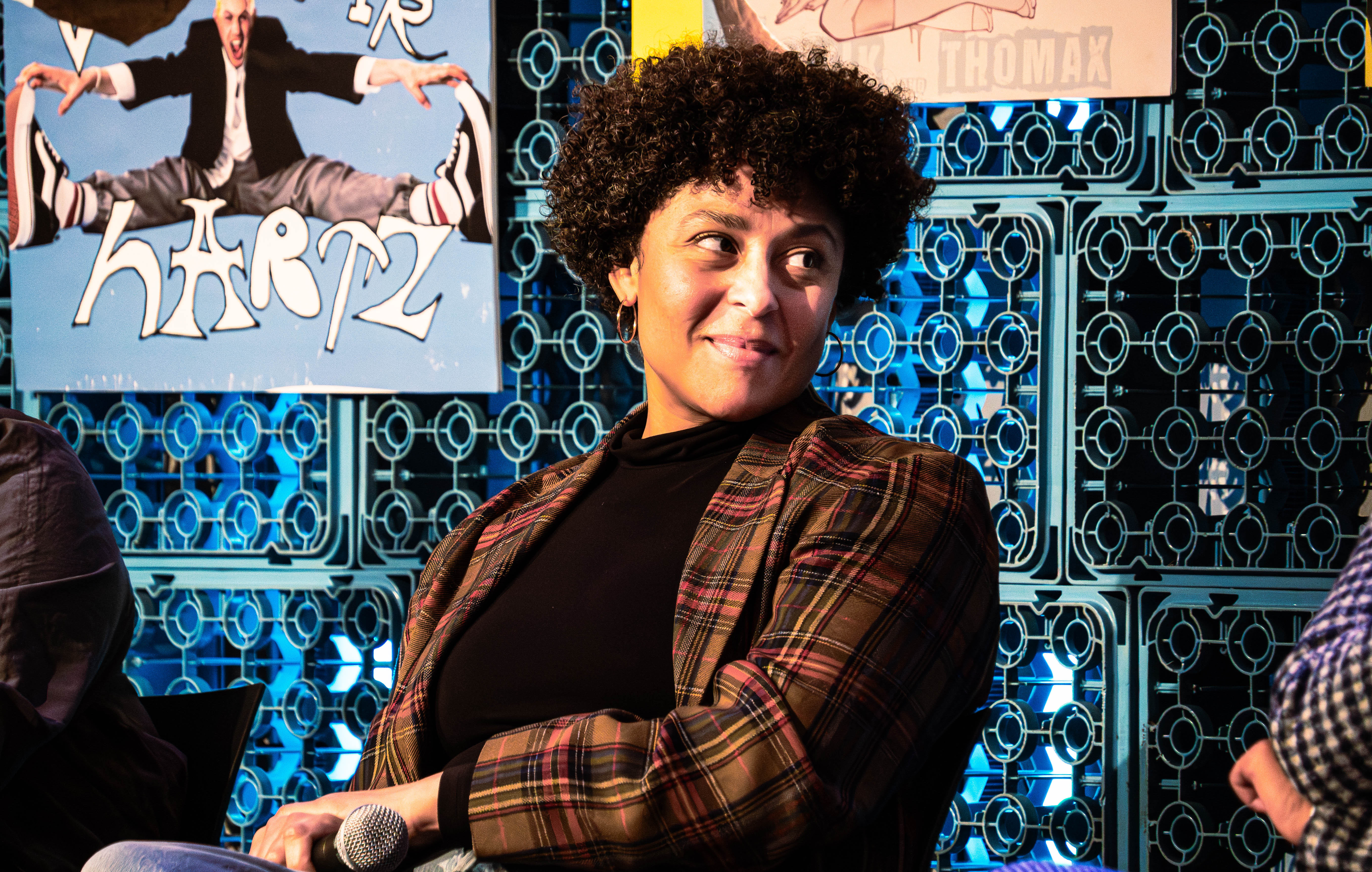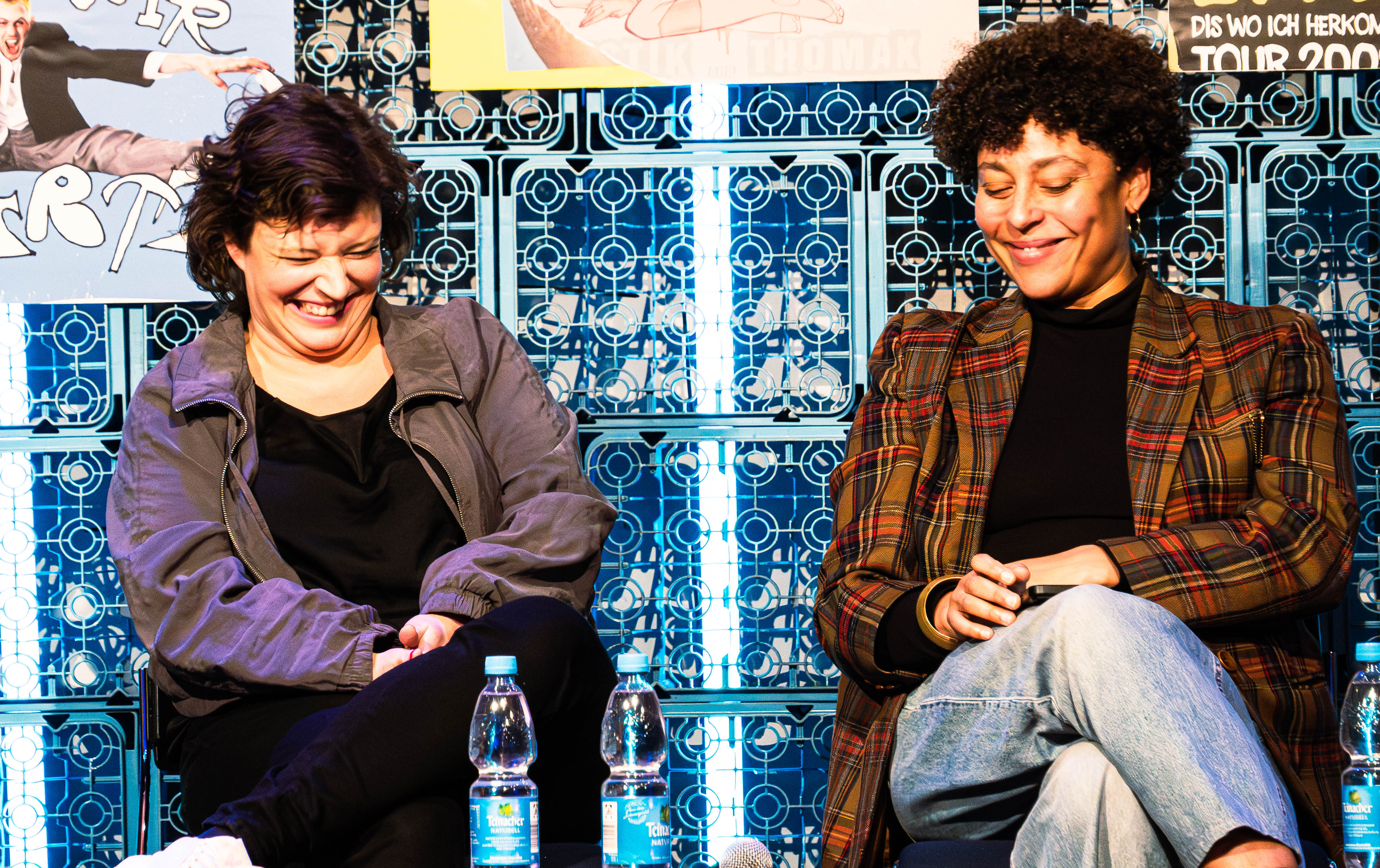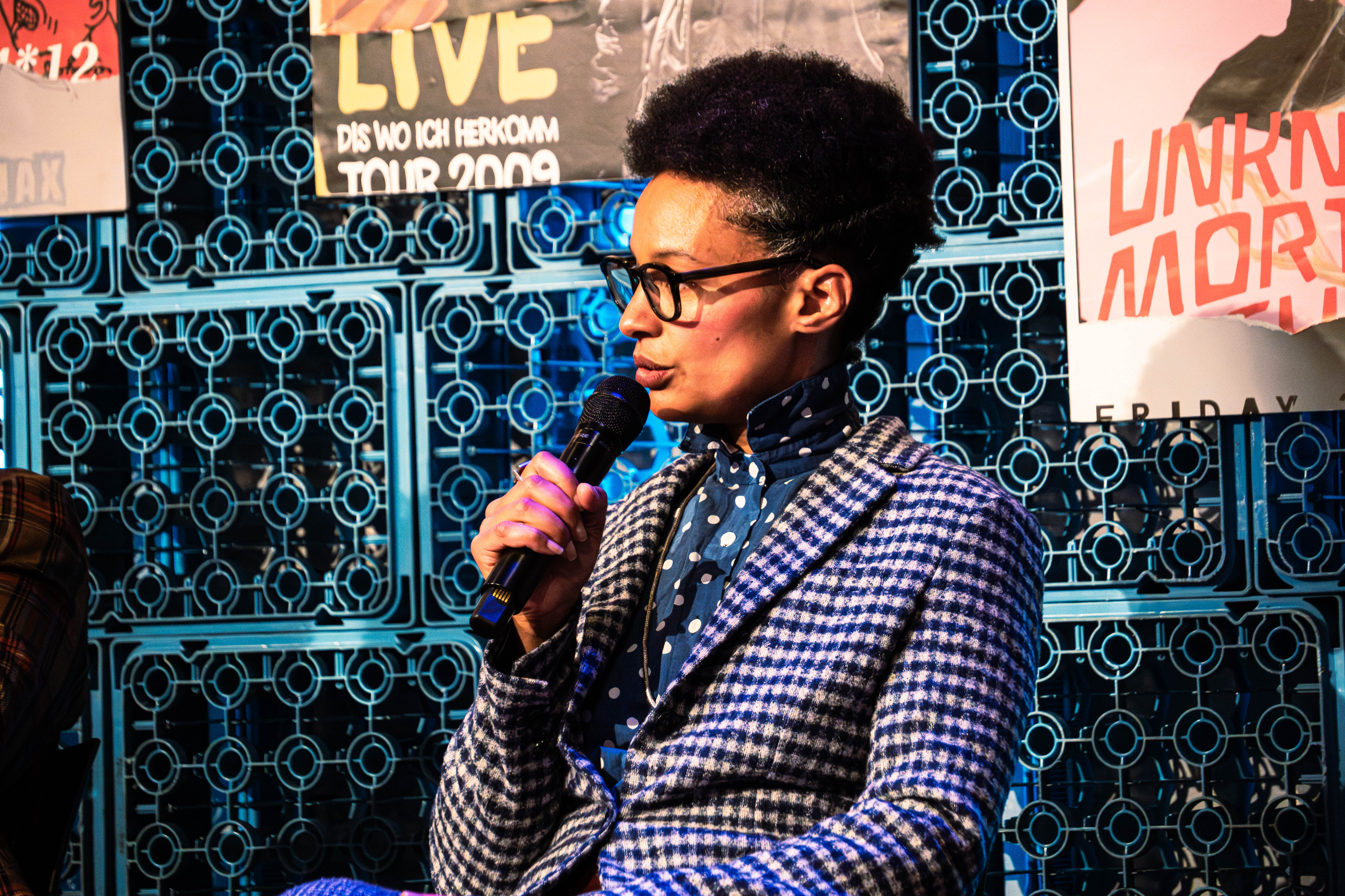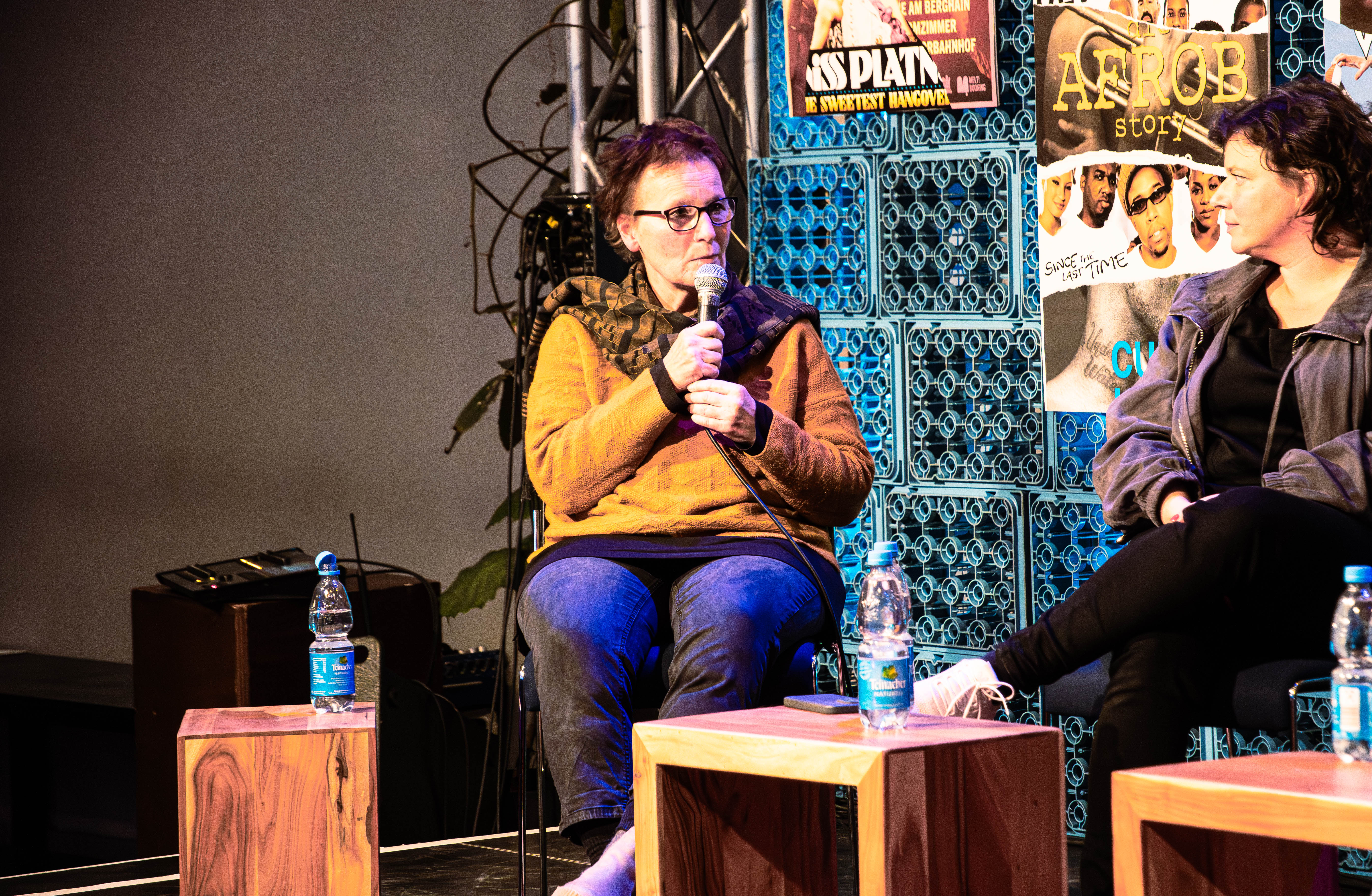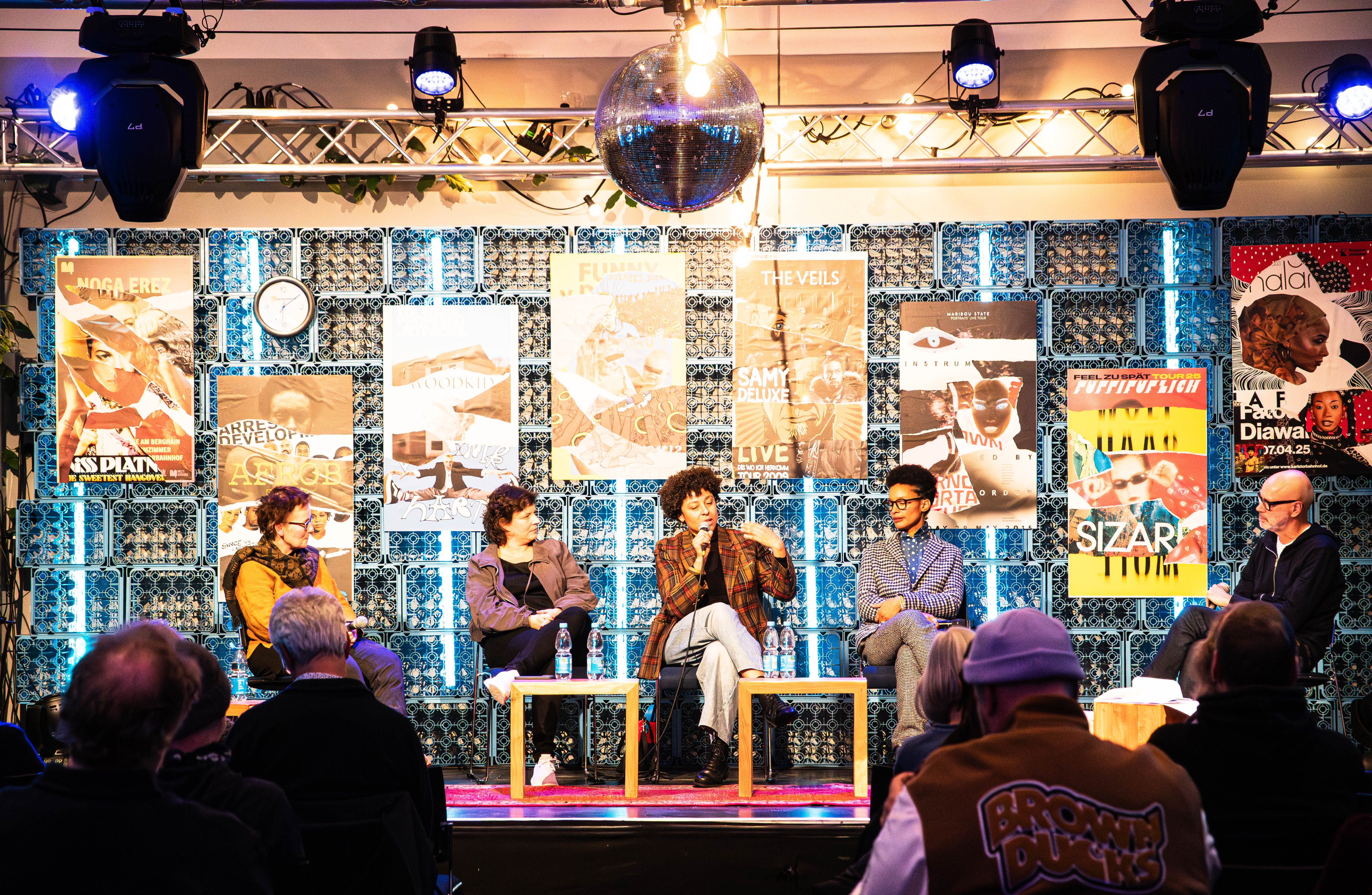 Es folgte das Panel „Zum Wert der Soziokultur“:  Eine Diskussion mit Britta Velhagen, Vorsitzende der LAKS Baden-Württemberg und Geschäftsführerin des Tollhaus Karlsruhe, mit Cora Malik, Geschäftsführerin des Karlstorbahnhof, mit Lisa Tuyala, Musikerin und Projektmanagerin „Global Music“ an der Popakademie Mannheim sowie Massalé Sankhon von Grumbkow, Theaterpädagogin aus Heidelberg. Siegfried Dittler, Geschäftsführer der LAKS Baden-Württemberg moderierte das Fachgespräch. In vielen konkreten Beispielen wurde der Wert für die Stadtgesellschaft aufgezeigt. Soziokulturelle Zentren bieten ein breites Kulturprogramm und auch Raum für zahlreiche Initiativen und Kooperationen. Natürlich ist es ein Balanceakt, ein großes Haus zu führen und finanzieren und dennoch die Inhalte der Soziokultur, Teilhabe für eine diverse Gesellschaft zu organisieren. Die verbindende Kraft der Musik, gerade für Menschen mit globalen Einflüssen in ihrer Biographie bringt die Nachbarschaft und viel Publikum zusammen. Künstler*innen schätzen für ihre Arbeit besonders die Möglichkeit der Zusammenarbeit mit Häusern wie dem Karlstorbahnhof. Betont wurde auch der Aspekt des sicheren Raumes, der für ihre Arbeit wesentlich ist.