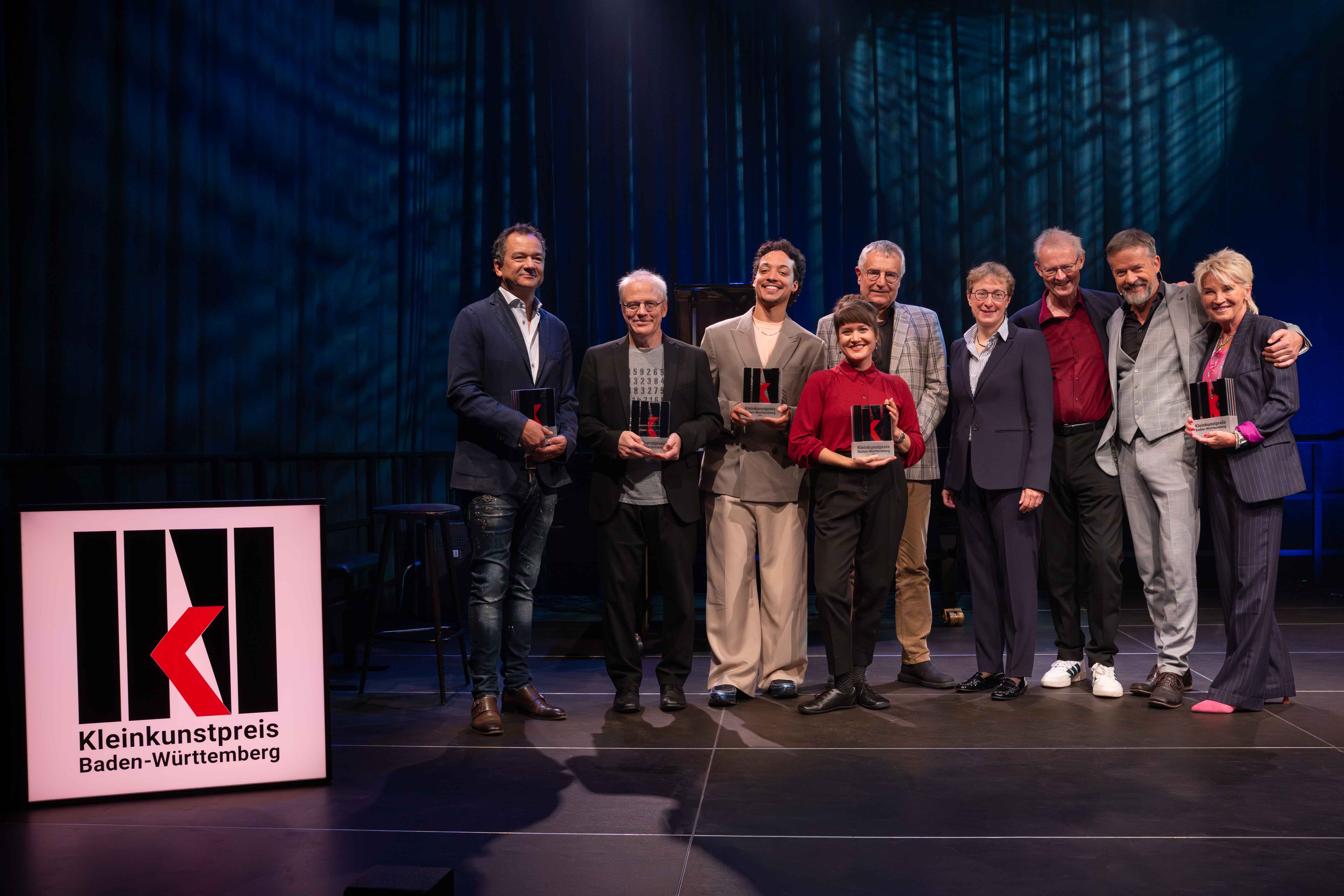 Kleinkunst auf höchstem Niveau: Die fünf Preisträgerinnen und Preisträger zeigten bei der Verleihung des Kleinkunstpreises am Dienstag, 7. Oktober, auf großer Bühne in Freiburg, wie vielfältig sie ist. Es wurde viel gelacht, geschmunzelt und gestaunt. Den Hauptpreis als beste Kleinkünstlerinnen und Kleinkünstler 2025 erhielten der Comedian Aurel Mertz, die Comedienne und Kabarettistin Doris Reichenauer sowie der Klavierkabarettist Prof. Timm Sigg. Sie durften sich über ein Preisgeld von jeweils 5.000 Euro freuen. Der mit 2.000 Euro dotierte Förderpreis ging an die Liedermacherin Elena Seeger. Mit dem Lotto BW-Ehrenpreis in Höhe von 5.000 Euro wurde der Kabarettist Stephan Bauer geehrt.