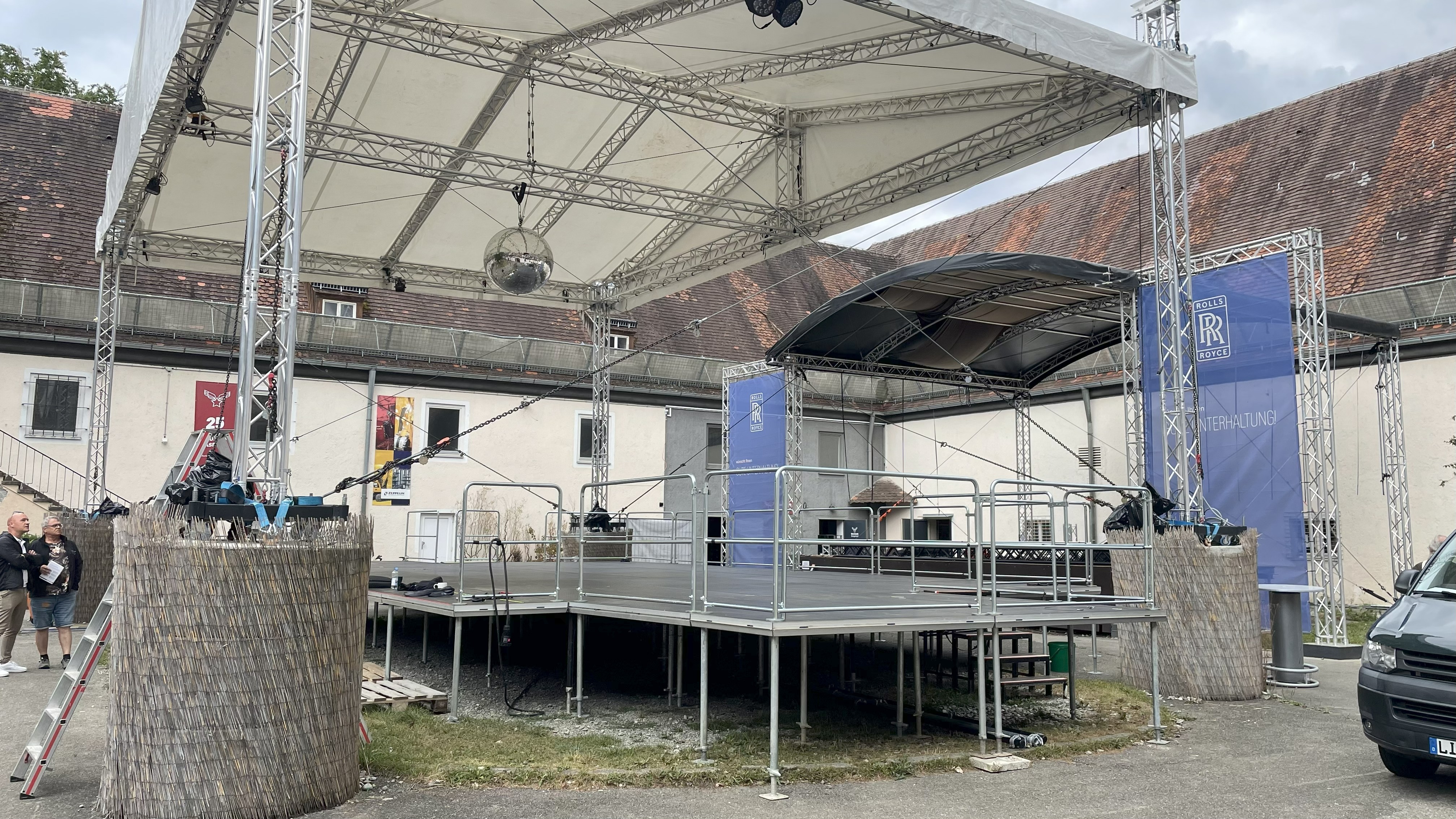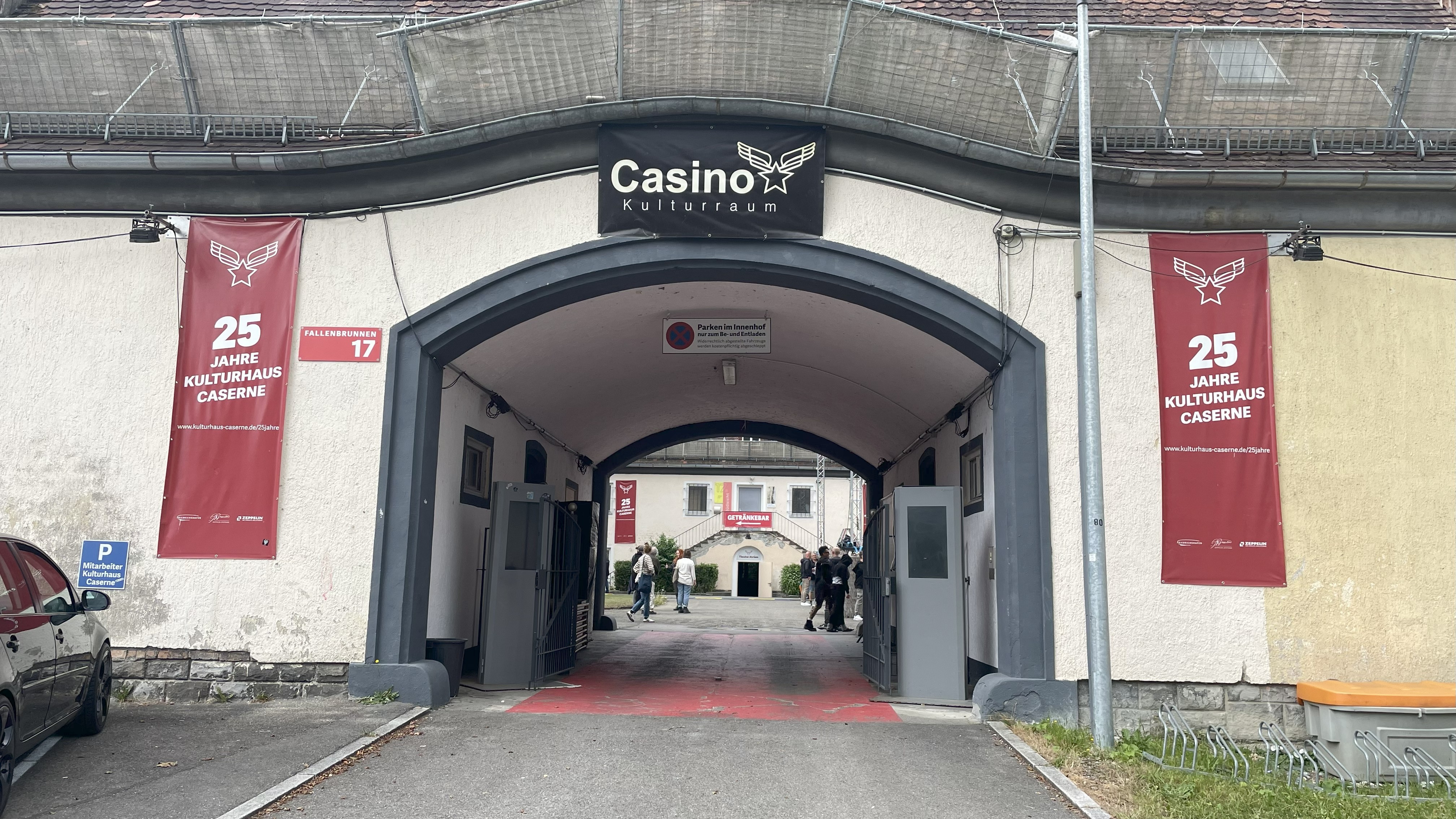 Am nächsten Tag führte die Tour zur Caserne in Friedrichshafen – einem großen Gebäudeensemble mit erheblichem Sanierungsbedarf. Geschäftsführer Klaus-Michael Haydt präsentierte die Programmarbeit, die über das Zentrum hinaus bis an den Bodensee reicht, u.a. mit den FN:Pop-Konzerten. Eine Initiative, die in unmittelbarer Nähe mit Bauwagen Wohn- und Kulturraum für Studierende schafft, wurde ebenfalls vorgestellt. Trotz starker inhaltlicher Arbeit fehlt es an Mitteln für die dringend nötige Sanierung und Nutzung aller Räume der ehemaligen Caserne.
